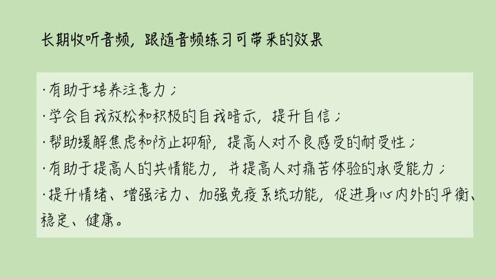 有助于入睡,提高睡眠質(zhì)量。通過音頻練習(xí)走進(jìn)放松、平靜的空間。