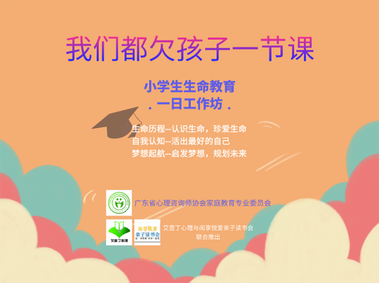 借此疫情防控契機,讓生命教育納入課程體系,彌補之前在這方面的短板,有目的、有計劃地開展教育,這對引導廣大青少年敬佑生命、熱愛生命,讓每個生命都成為最好的自己,都有積極的意義。為此,廣東省心理咨詢師協(xié)會家庭教育專業(yè)委員會聯(lián)合艾壹丁心理、廣東艾馨家庭教育有限公司、閱享悅愛親子讀書會共同舉辦這次為期1天的《小學生生命教育一天親子工作坊生命教育工作坊》,給你和孩子一個重啟的機會。
